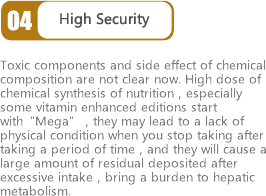 A torrent of broken technology makes the plants release nutrition, holds active ingredient, absorbs hot and cold and exploitstarget. It rejects pesticide residue, heavy metal and additive within the whole process. We knew that we can do nothing about renewing contaminated lands and air,but we can renew the plants to organic state from 100 years ago and restore you a pure and clean plant molecular.