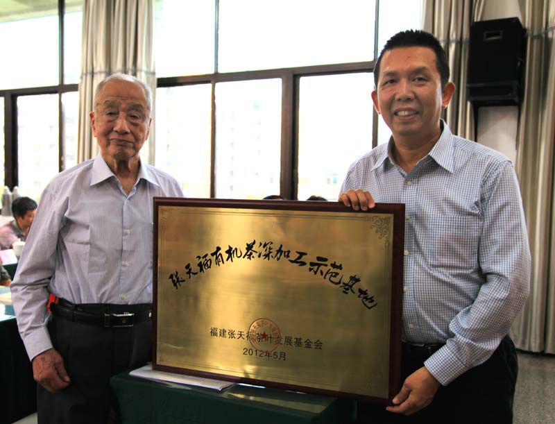 在剛剛舉行的張?zhí)旄2枞~發(fā)展基金會換屆大會上,104歲茶圣張?zhí)旄ⅰ皬執(zhí)旄S袡C茶深加工示范基地”授予正源華茶,這是張老在指導建設了五個有機茶種植示范基地之后,建設的唯一一個有機茶深加工示范基地,寄托了張老對有機茶深加工的殷切期望。